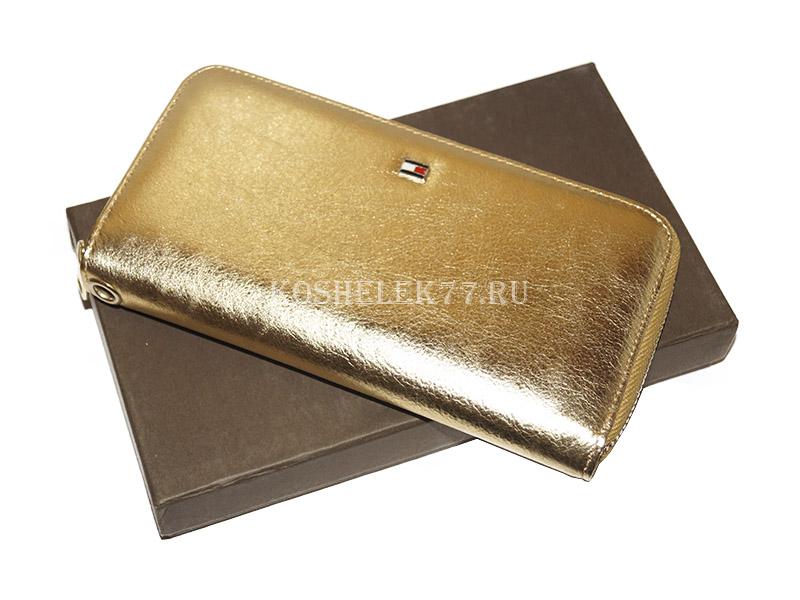 Кошелек Томми Хилфигер на молнии золотой