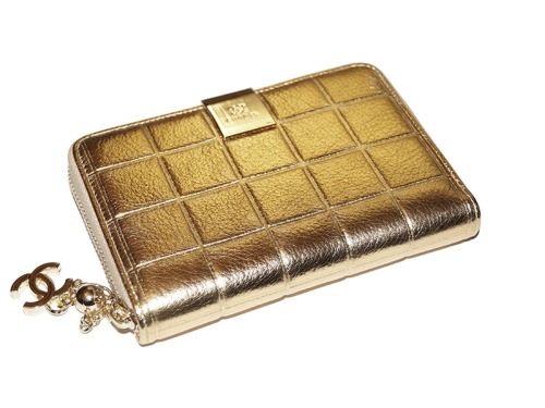 Кошелек Шанель золотой на молнии средний