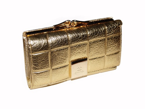 Кошелек Шанель золотой на кнопке
